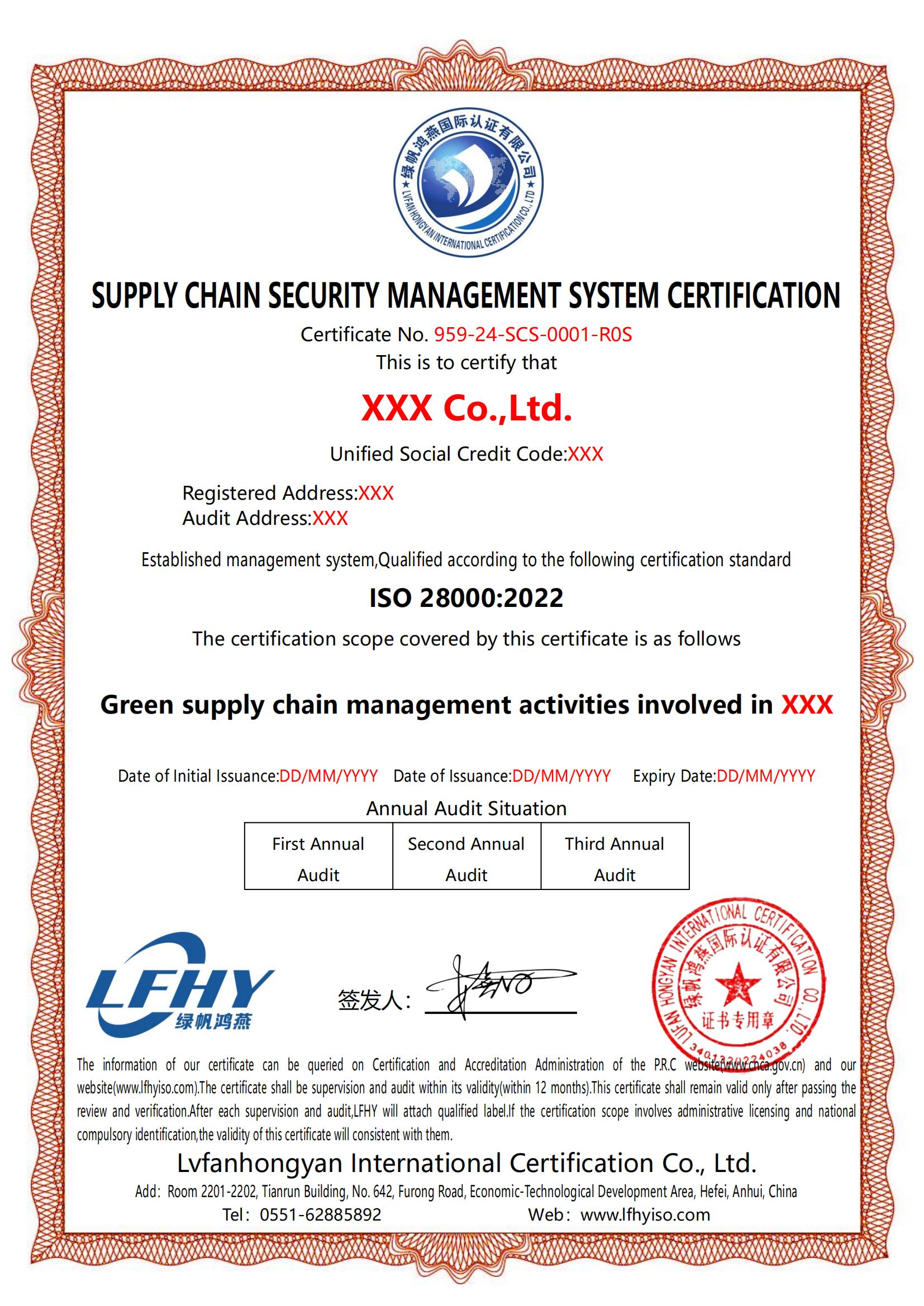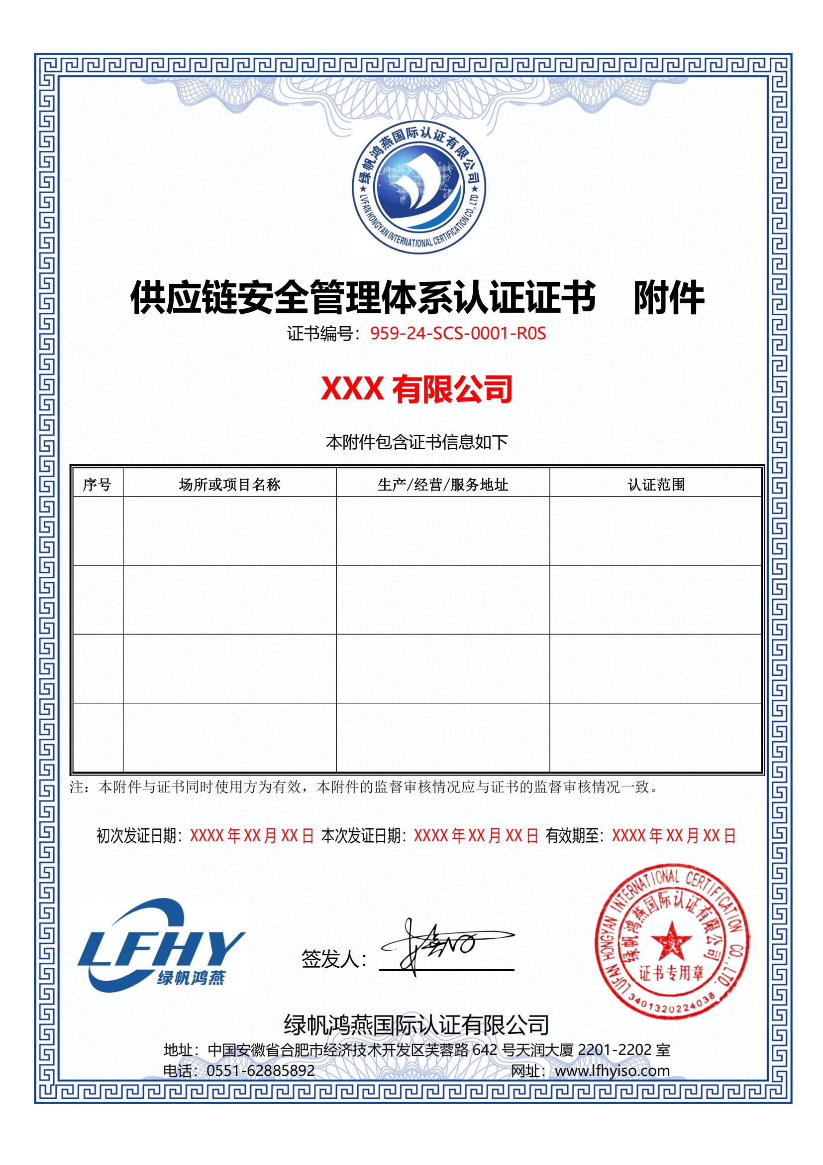 《供應(yīng)鏈安全管理體系認(rèn)證證書(shū)》