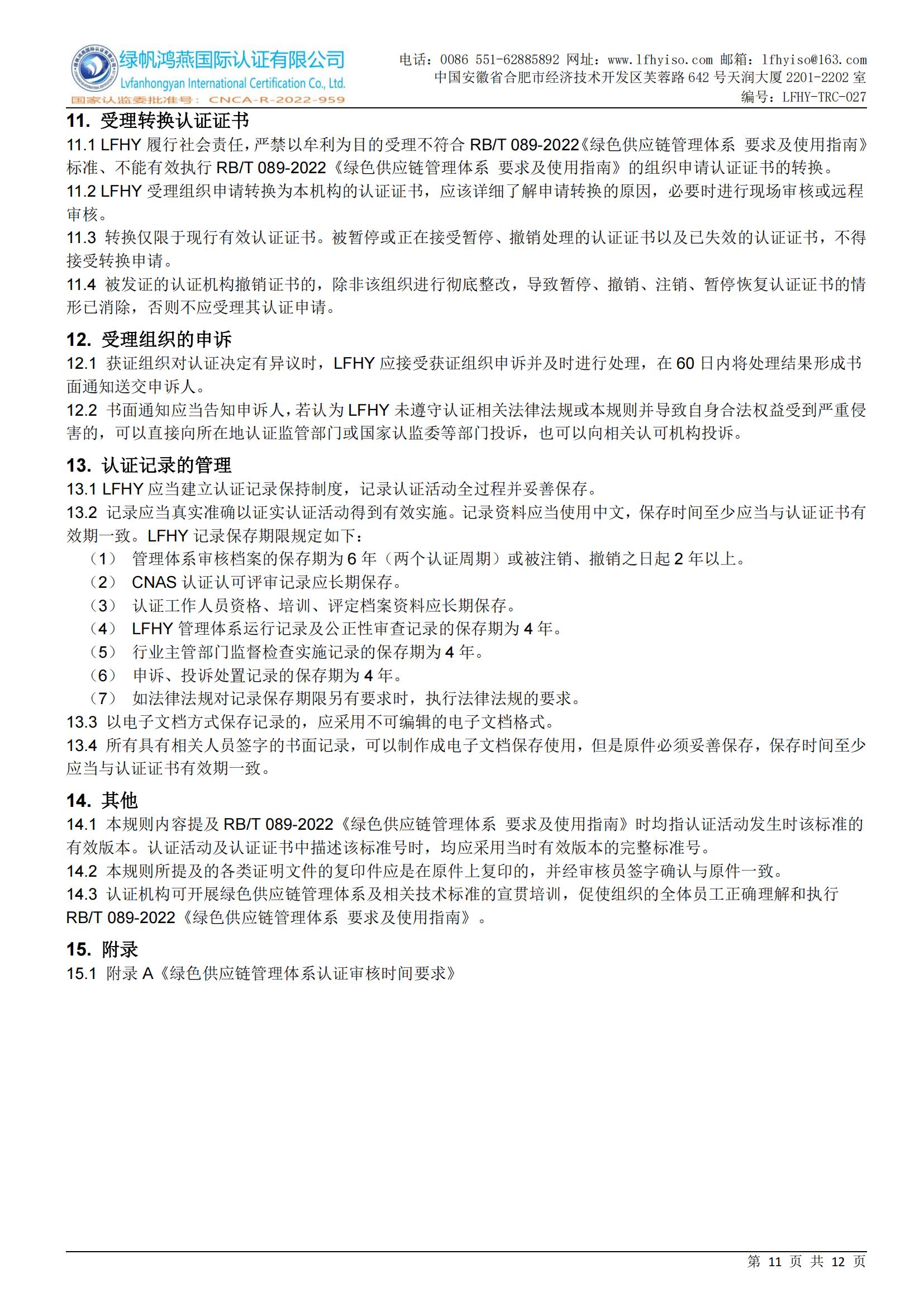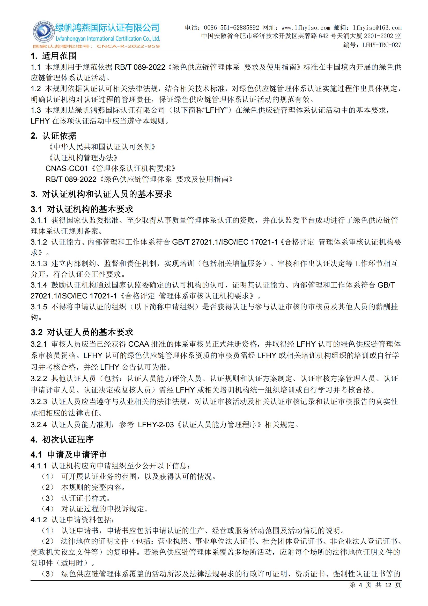 LFHY-TRC-027《綠色供應鏈管理體系認證實施規(guī)則》