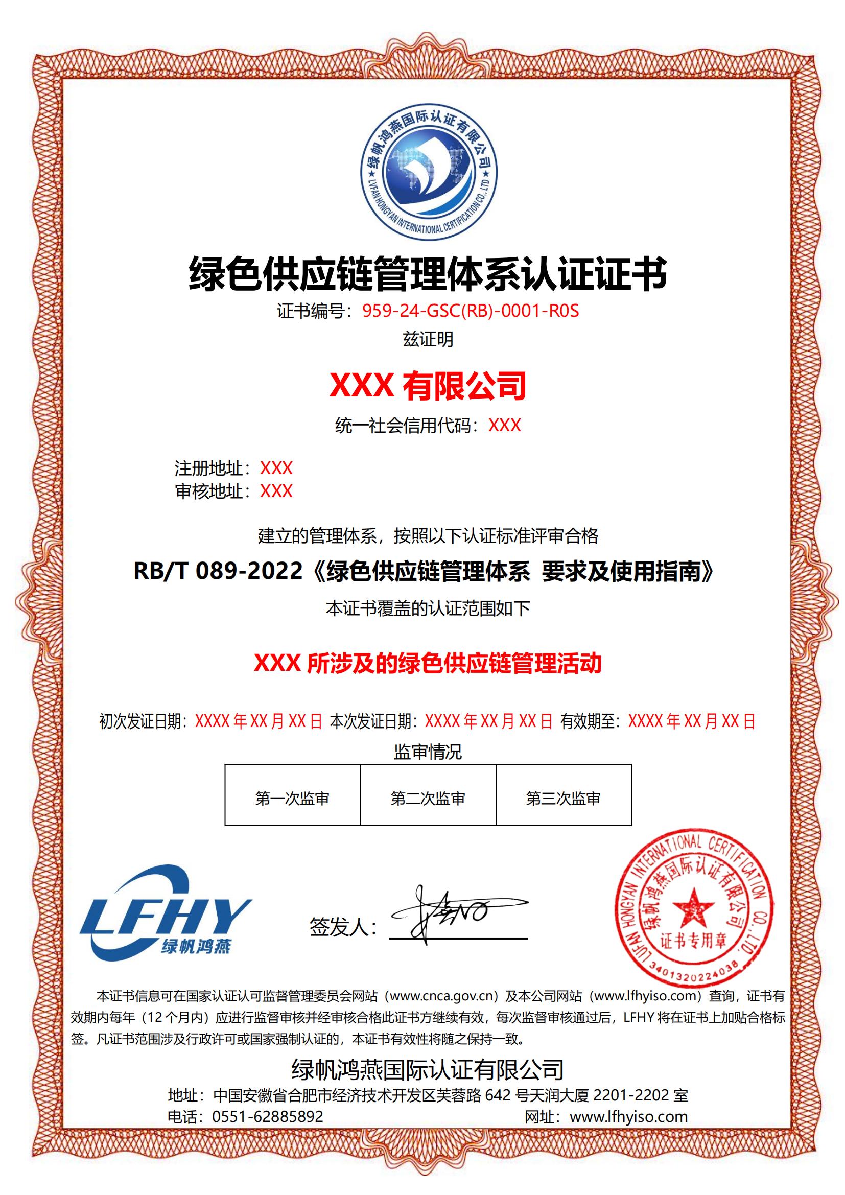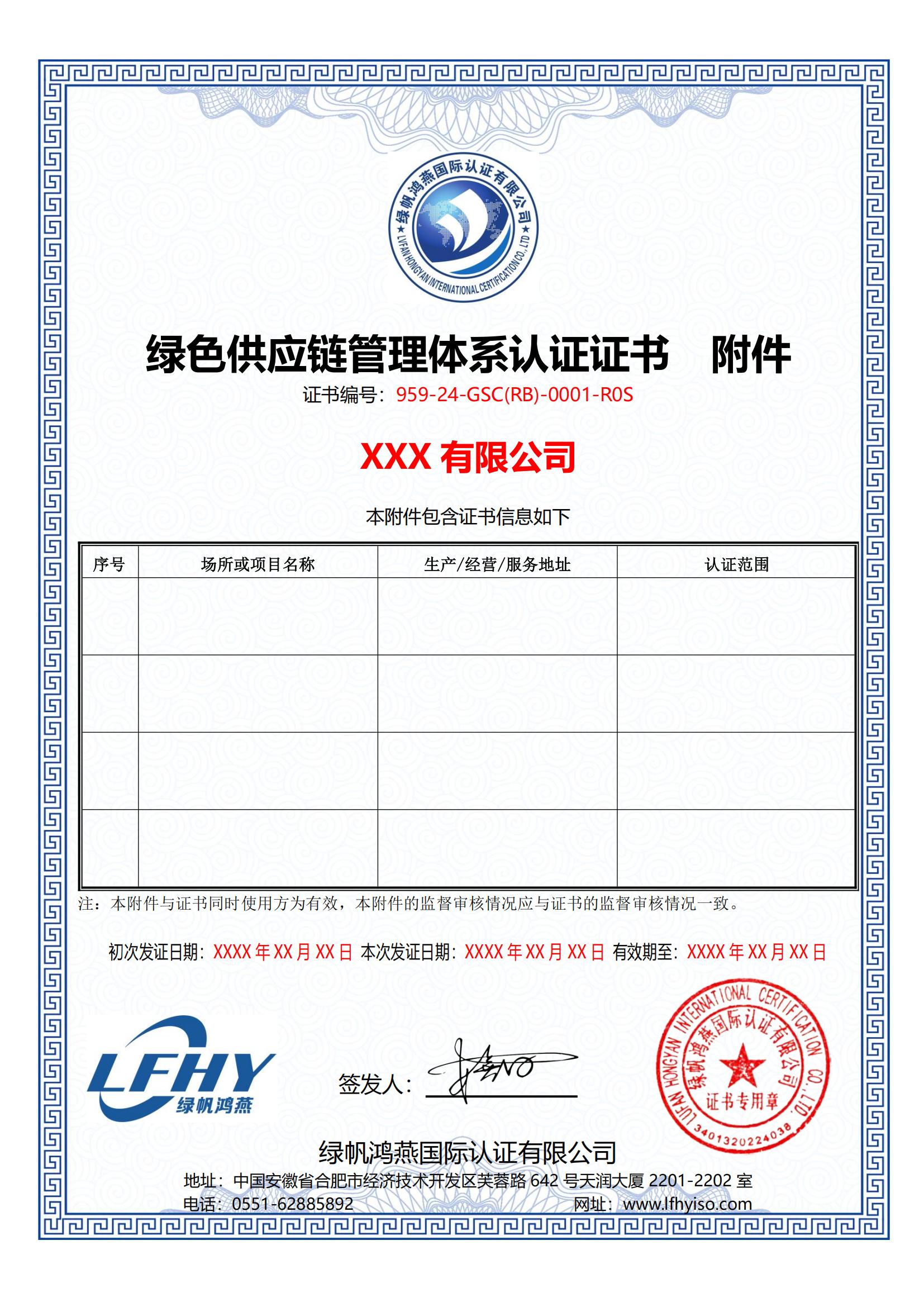 《綠色供應(yīng)鏈管理體系認(rèn)證證書(shū)》